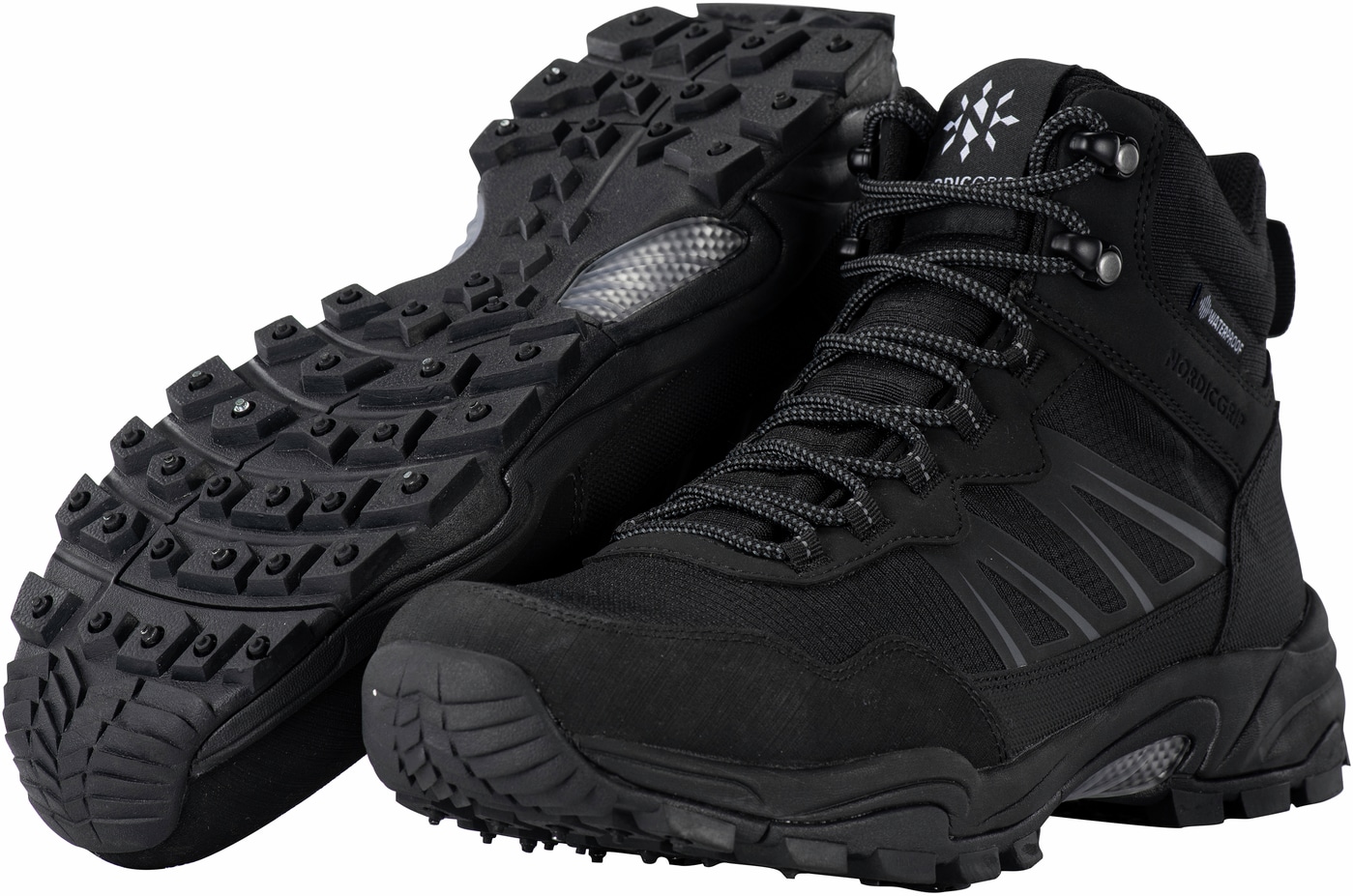 • 16 fasta piggar fördelade på häl- och framfot ger bra grepp på halt underlag
